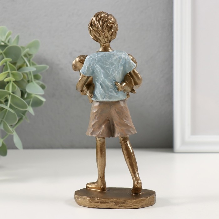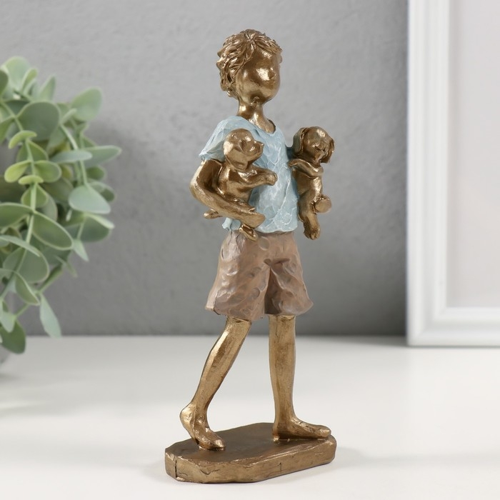 Сувенир полистоун "Мальчик со своими любимцами - щенками" 7,5х4,5х16,5 см