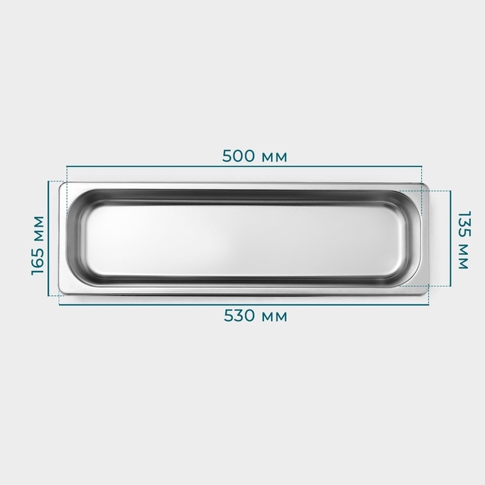 Гастроемкость 2/4 из нержавеющей стали, 65 мм, 53×16,4×6,5 см, толщина 0,8 мм