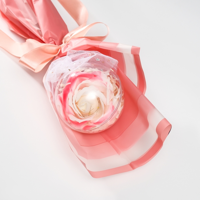 Букет из мыльных лепестков "Роза в шарике" розовый 8,5х8,5х36 см