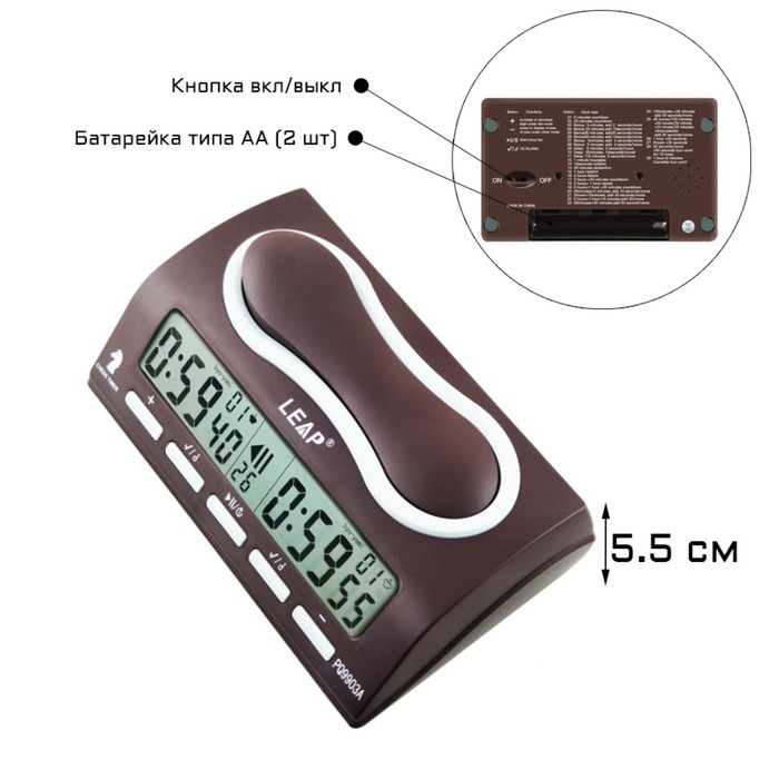 Шахматные часы, электронные, LEAP FIDE, PQ9903A, 11 х 20 х 5.5 см, 2 АА