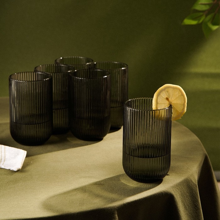 Набор стаканов стеклянный SL Home «Модерн», 400 мл, 8×13 см, цвет графитовый