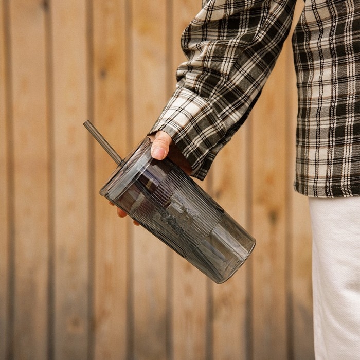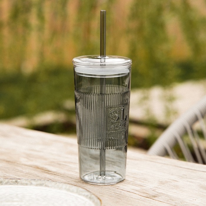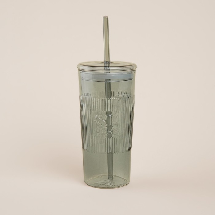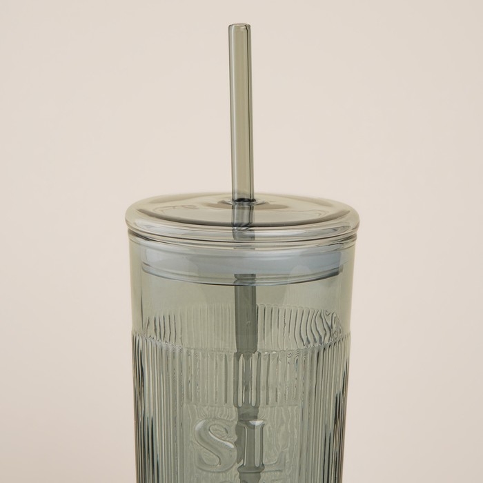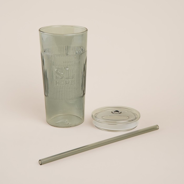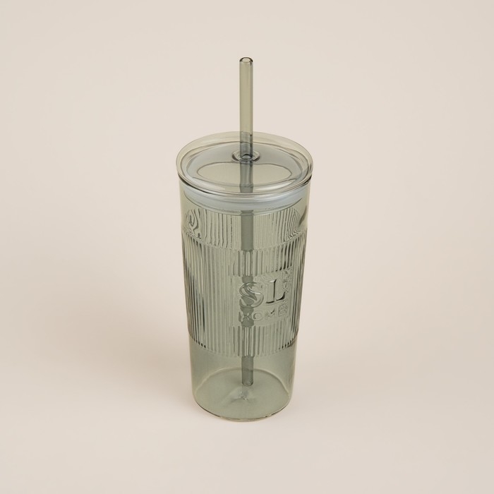 Стакан стеклянный с силиконовой трубочкой SL Home «Идиллия», 650 мл, 8,5×24 см, цвет зелёный