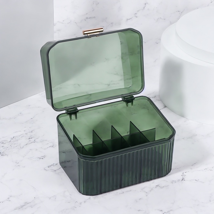 Органайзер для хранения «GREEN», навесной, 1 секция, с клеевой основой, 11,8 × 7,8 × 9 см, цвет полупрозрачный/зелёный