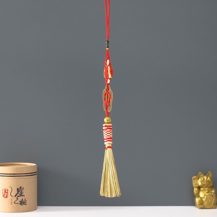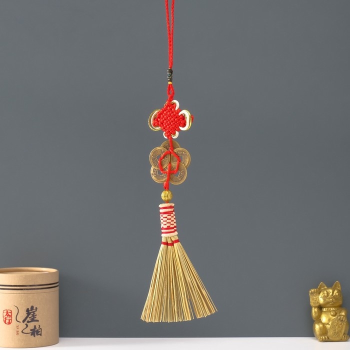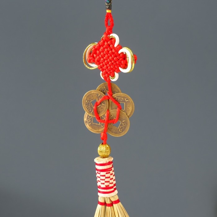 Подвеска "Талисман. Веник с 5-ю монетками и узлом счастья" 32 см