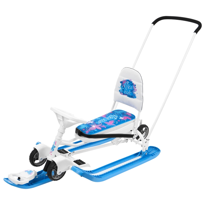 Снегокат с колёсами «Тимка спорт 6 Бабочки», ТС6/БТ, с родительской ручкой, со спинкой и ремнём безопасности