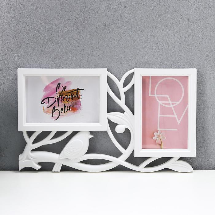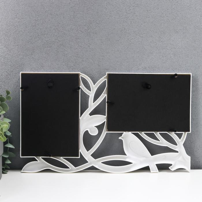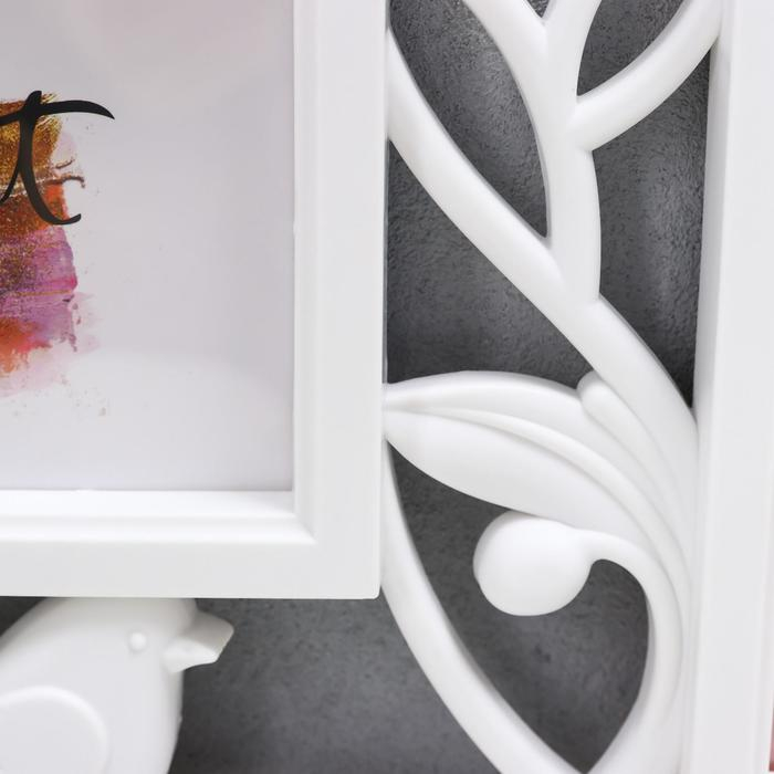 Фоторамка пластик на 2 фото 10х15 см "Птица счастья" белая 21х35 см