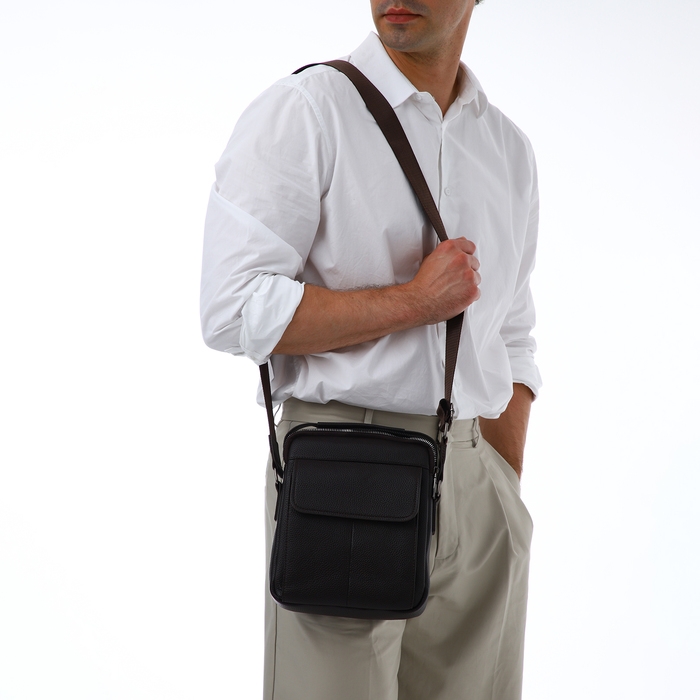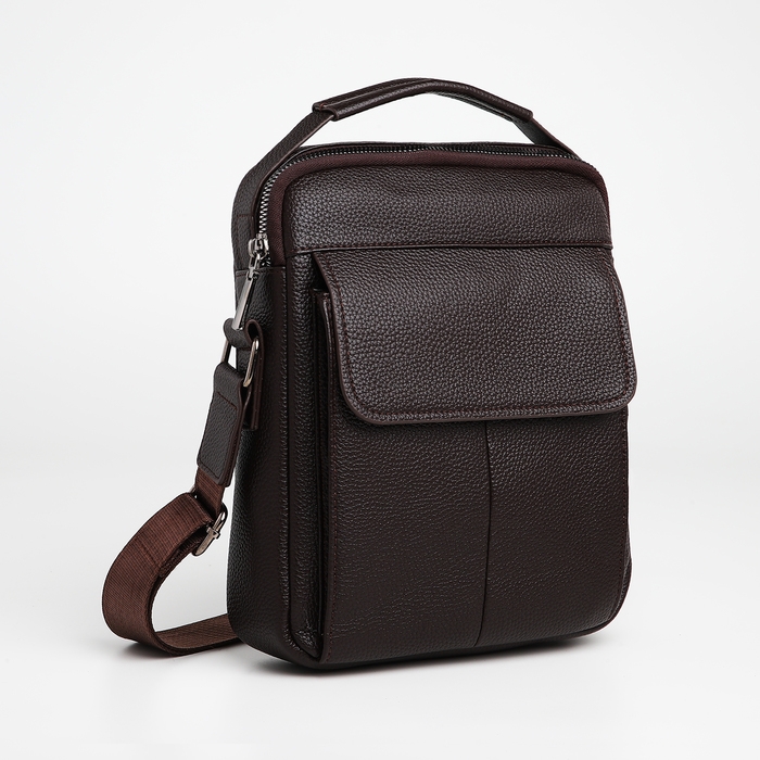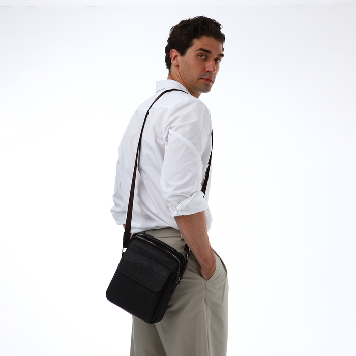 Сумка мужская через плечо TEXTURA, 2 наружных кармана, цвет коричневый