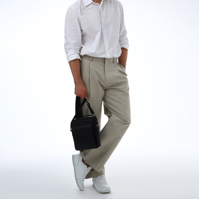 Сумка мужская через плечо TEXTURA, 2 наружных кармана, цвет чёрный