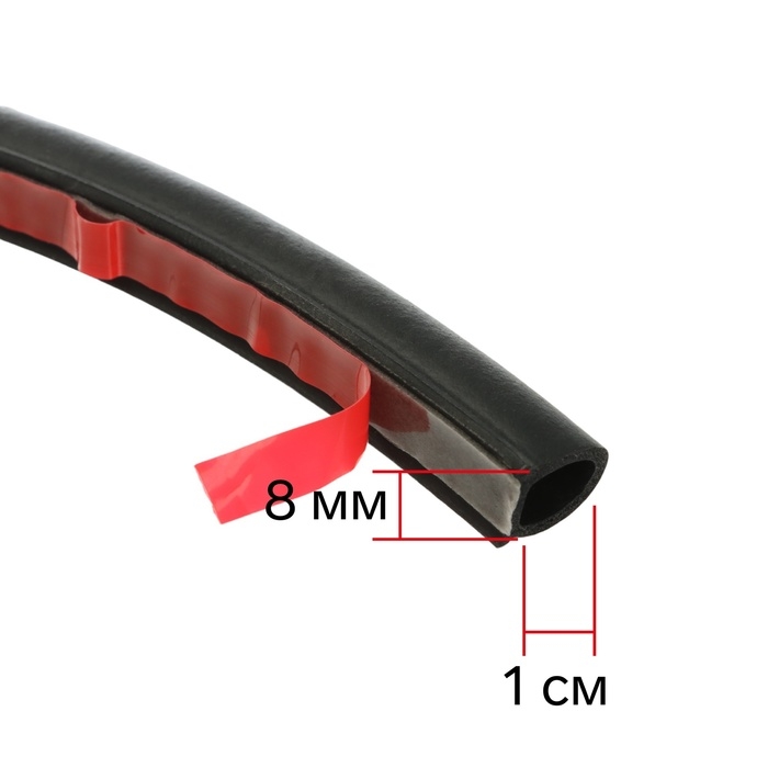 Уплотнитель двери автомобиля самоклеящийся чёрного цвета имеет форму буквы «О» и диаметр 10 мм. Длина ленты составляет 5 метров. Он изготовлен из высококачественного пластика и подходит для большинства моделей автомобилей.