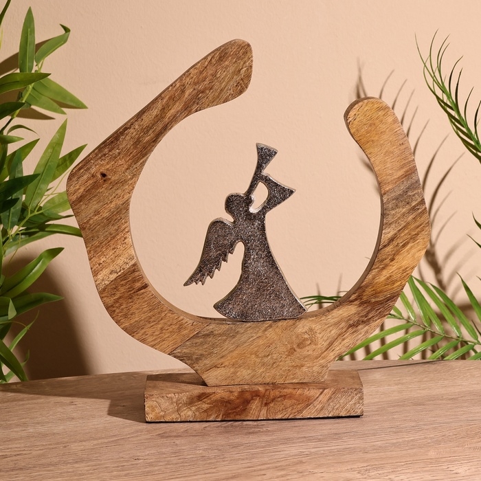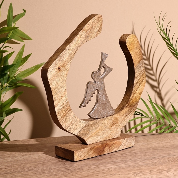 Сувенир интерьерный в деревянном кольце "Ангел" 25х8х28 см