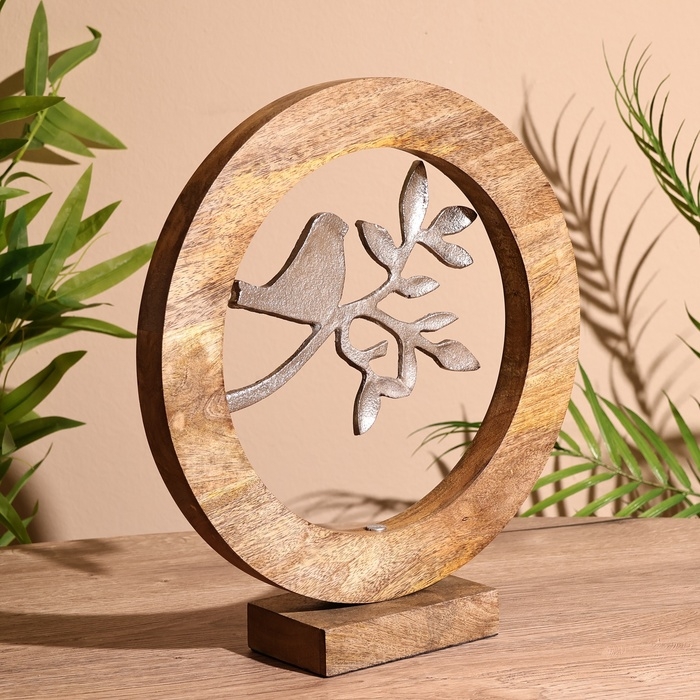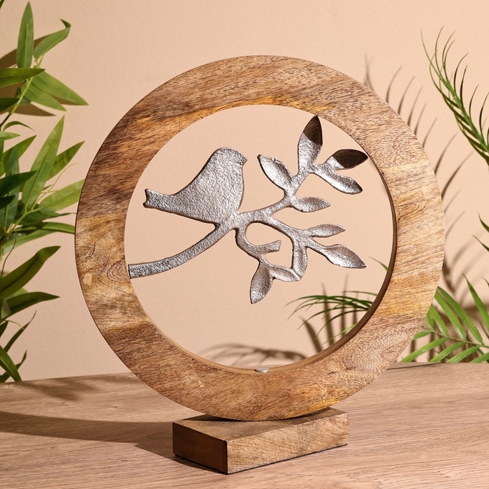 Сувенир интерьерный в деревянном кольце "Птичка" 30х8х33 см