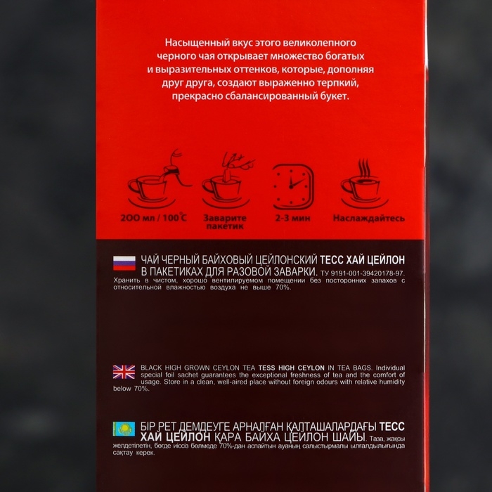 Чай черный TESS HIGH CEYLON – великолепный пример совершенства природного чайного букета. Благородный крупнолистовой цейлонский чай, выращенный на равнинных плантациях, гармонично сочетает свежий пряный вкус, сдержанную крепость, характерную для дорогих сортов цейлонского чая.