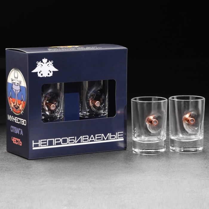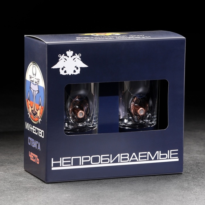 Стопки "Непробиваемые. ВМФ", 2 шт, эмблема, 250 мл