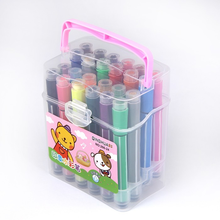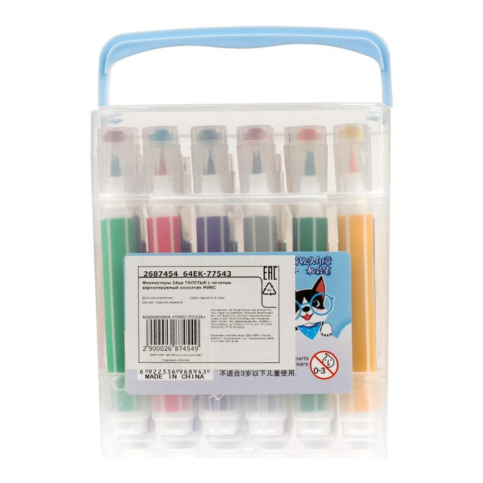Фломастеры 24 цветов, толстые, с печатью, вентилируемый колпачок, МИКС