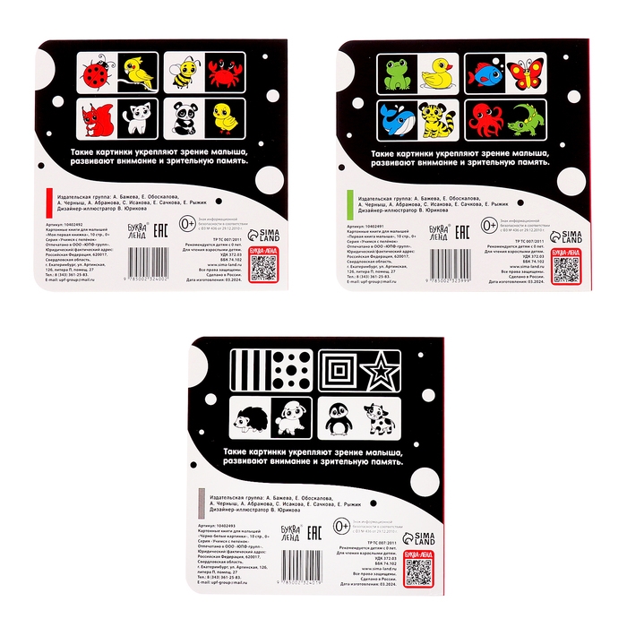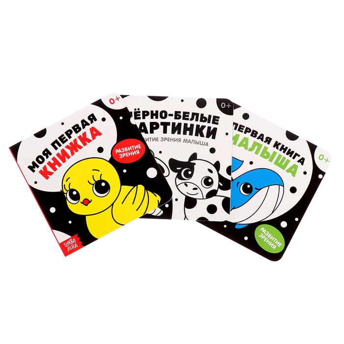 Набор картонных книг «Контрастные и черно-белые картинки для новорожденных», 3 шт. по 10 стр., 0+
