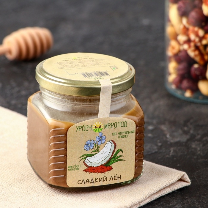 Урбеч из тёмного льна и кокосового масла - это натуральная паста, которая не содержит эмульгаторов и загустителей. Кроме нежного вкуса, для которого таять во рту не просто слова, урбеч обладает множеством полезных свойств: поддерживает водный баланс организма, заботится о сердце и сосудах, а также способствует правильной работе кишечника.