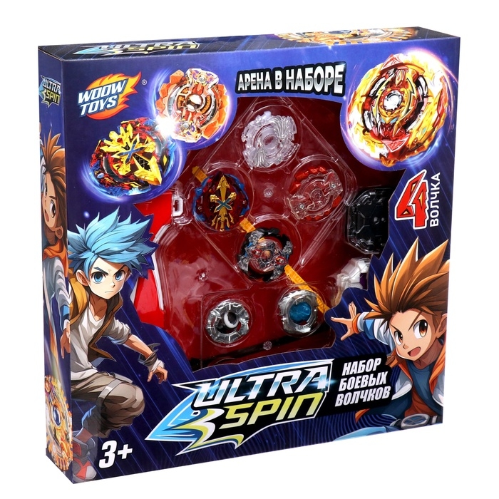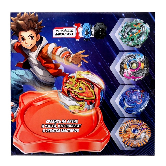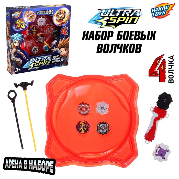 - В набор входят 2 устройства для запуска, 4 волчка, 1 арена.
