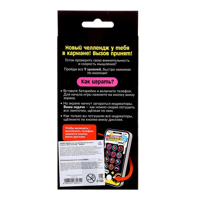 «Клик челлендж» — настольная игра для детей от 5 лет. Увлекательный смартфончик подготовил интересные задания, пройти которые сможет самый ловкий игрок. Бросьте вызов технологиям и покажите, кто самый внимательный.