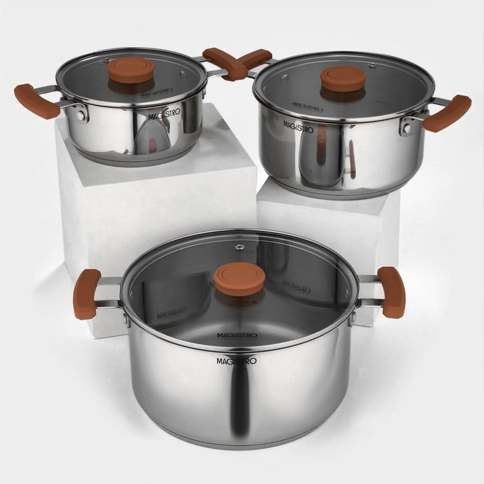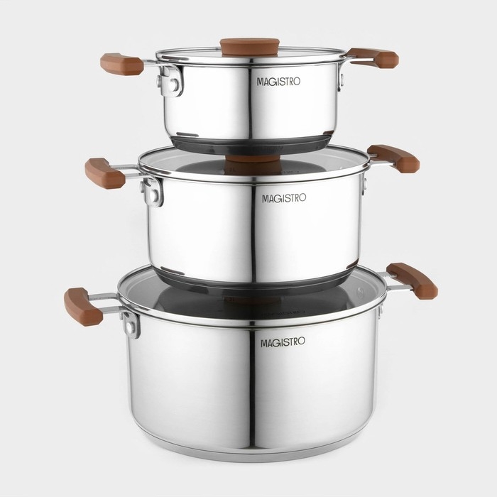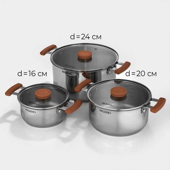 Набор кастрюль из нержавеющей стали Magistro, 3 шт: d=16/20/24 см, штабелируемые, индукция