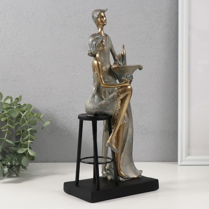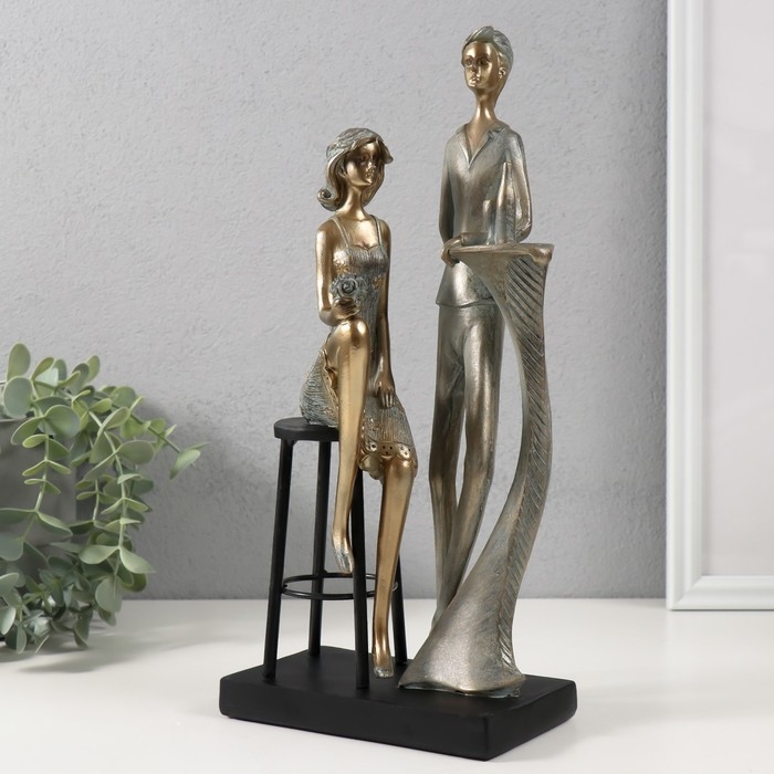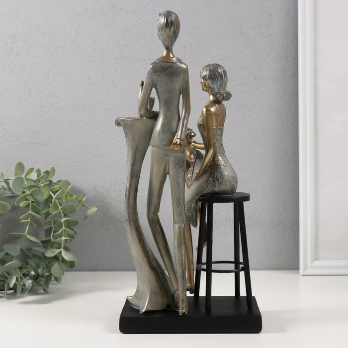 Сувенир полистоун "Парочка за столиком - свидание" бронза с патиной 14,5х9х31,5 см