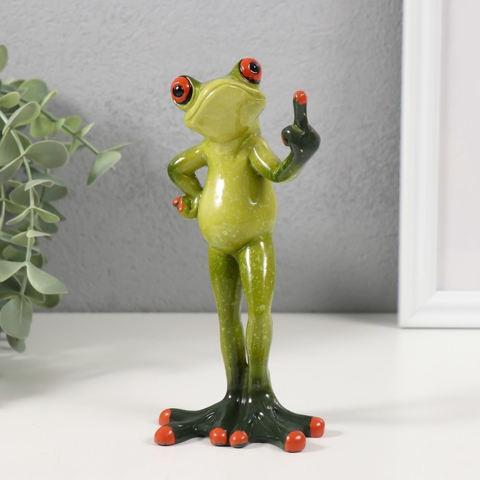 Сувенир полистоун лак "Лягуха показывает средний палец" 7,5х6,8х15,7 см