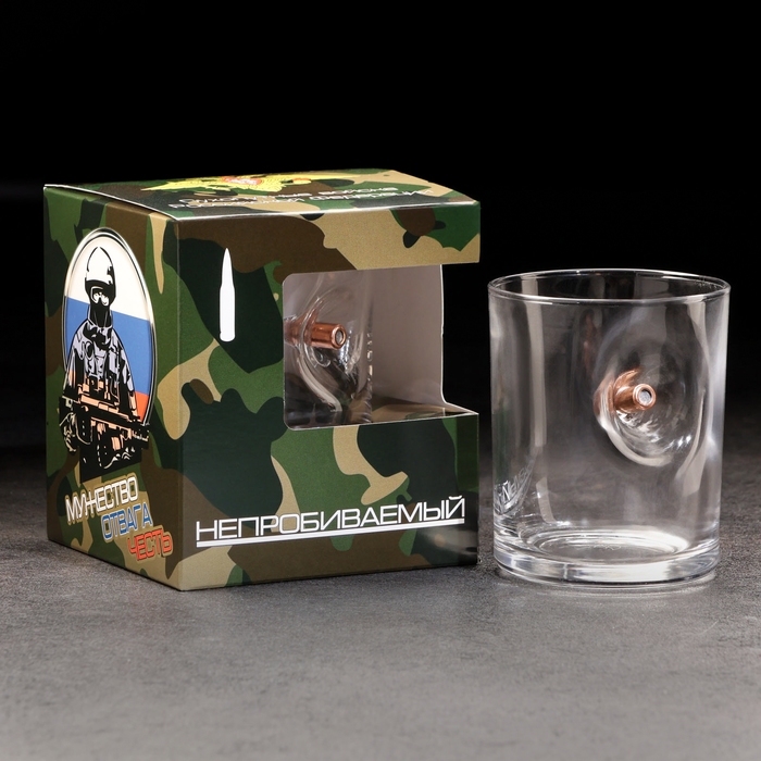 Стакан "Непробиваемый. 23 февраля", для виски, с пулей, 250 мл