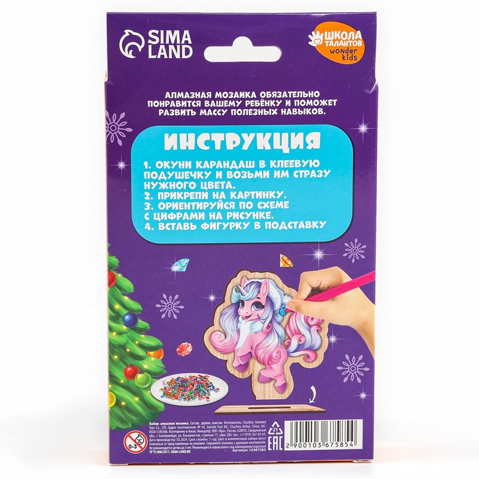 Алмазная мозаика на фигурке для детей «Волшебный единорог», полное заполнение