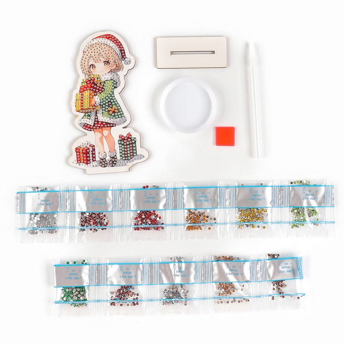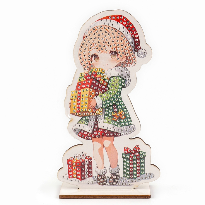 Алмазная мозаика на новый год для детей на деревянной фигурке «Милая девочка», 8 х 15 см, новогодний набор для творчества