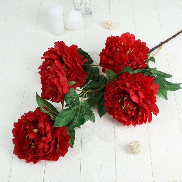 Цветы искусственные "Пион кустовой" 5 бутонов 15х110 см, красный