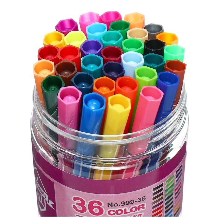 Фломастеры 36 цветов, в тубусе, розовый "Мишка"