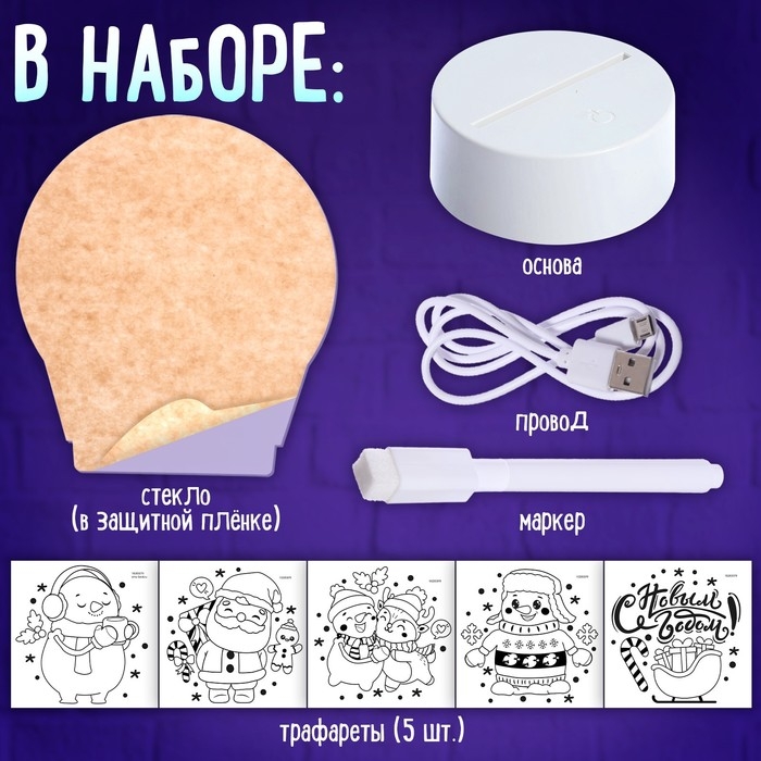Набор для творчества «Новогодний ночник», 5 трафаретов, с маркером