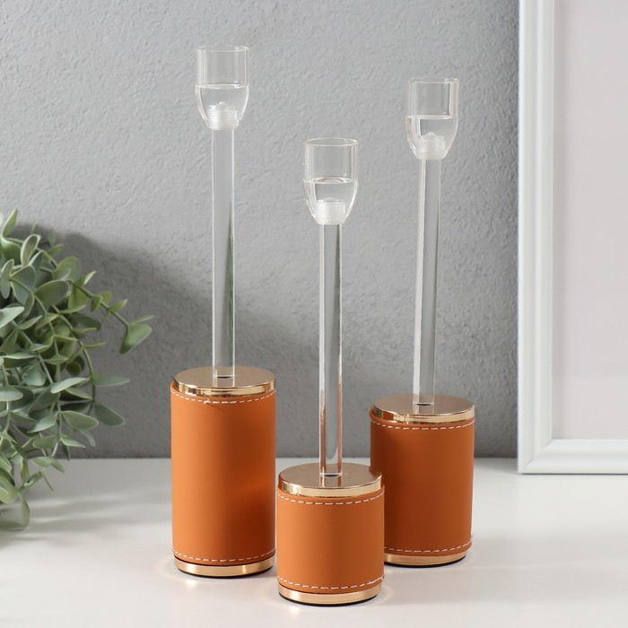 Подсвечник металл, акрил "Надёжность" d=2,2 см, набор 3 шт h= 27 см, 24,5 см, 23 см