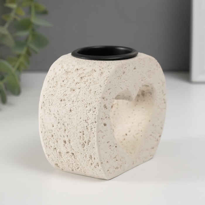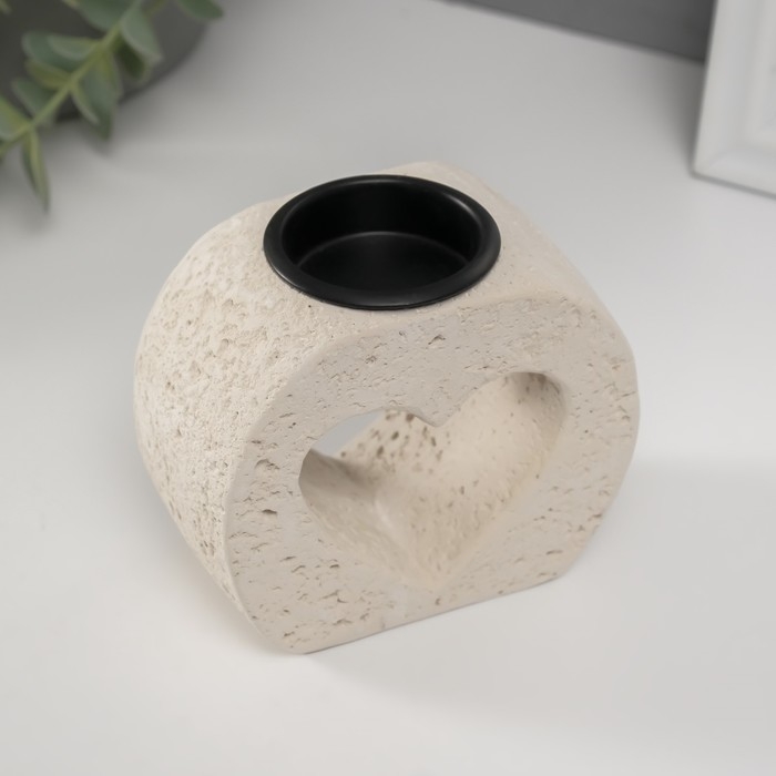 Подсвечник гипс, металл на 1 свечу "Сердце в камне" d=3,8 см 5х9,6х8,5 см