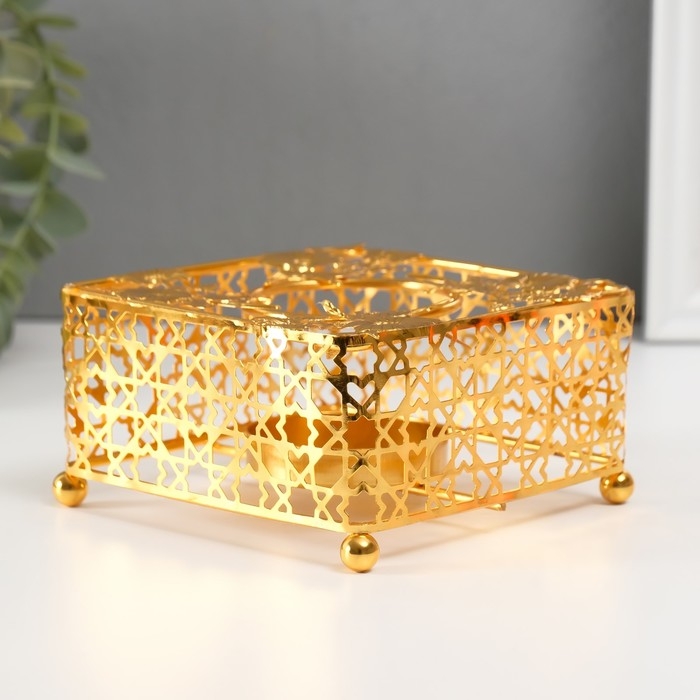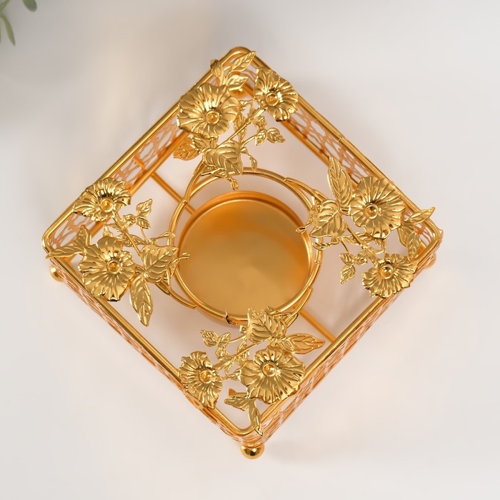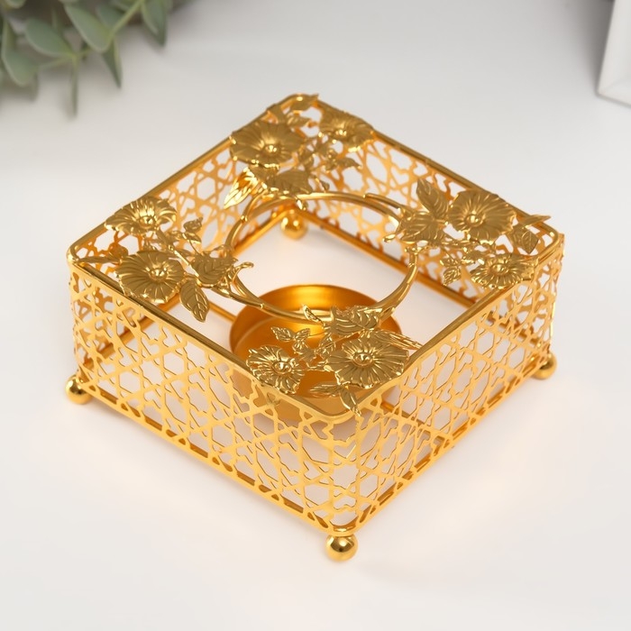 Подсвечник металл на 1 свечу "Квадрат. Подсолнухи" золото d=5,5 см 10х10х5,6 см