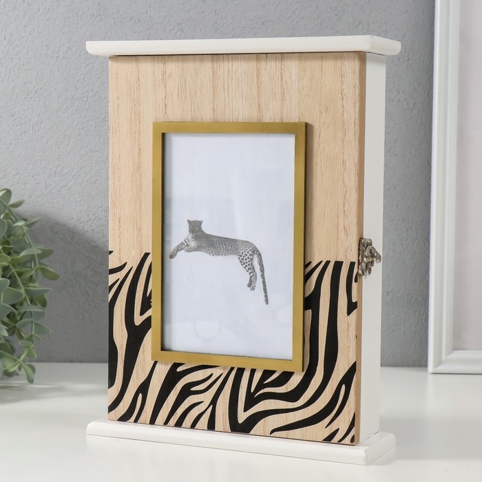 Ключница дерево 5 крючков с фото 10х15 см "Зебра" 6х20х25,8 см