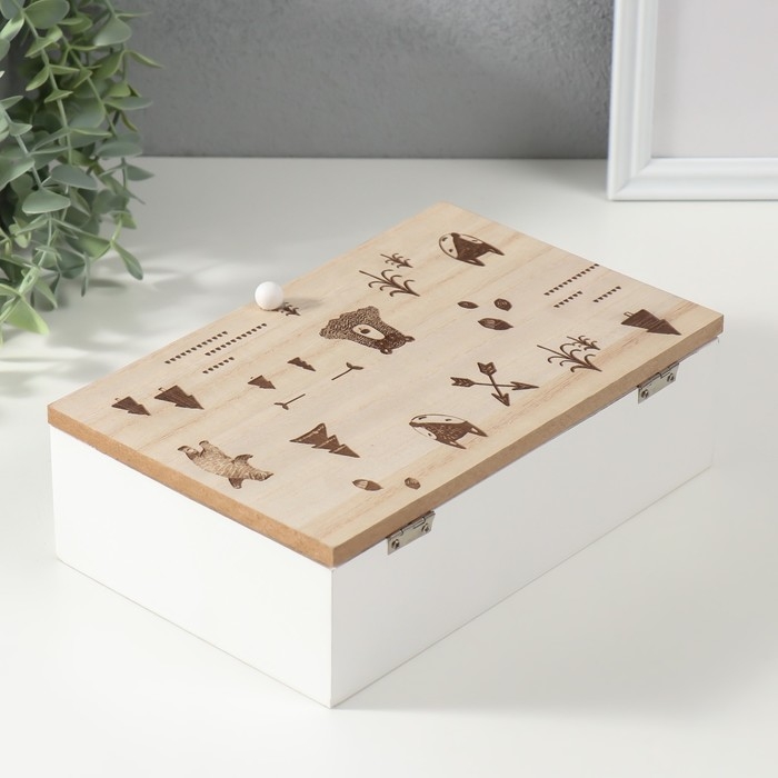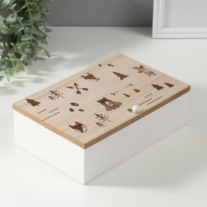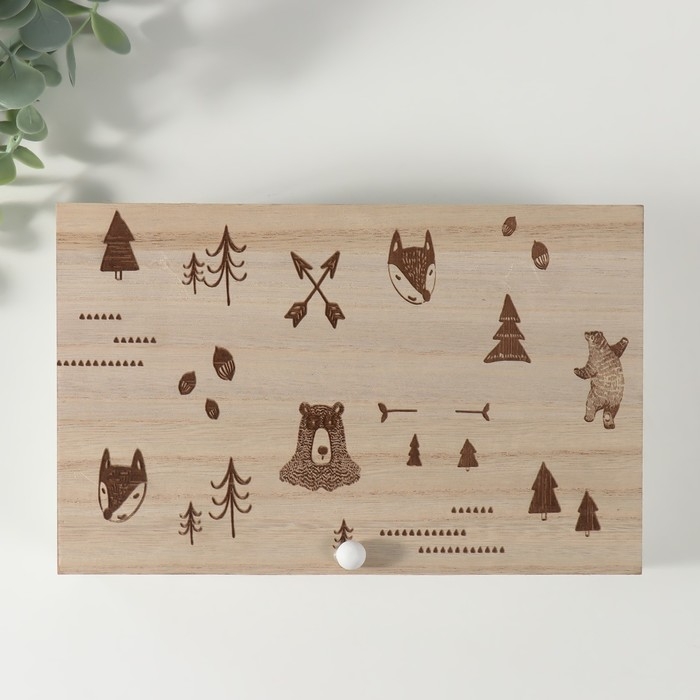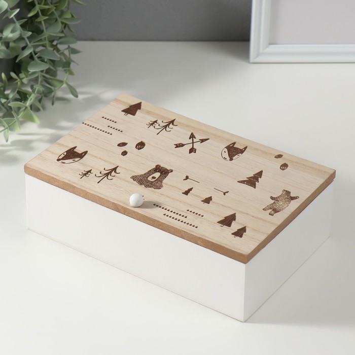 Шкатулка дерево с делениями "Лесные звери" 23х15х8,3 см
