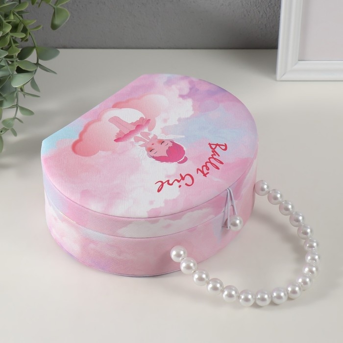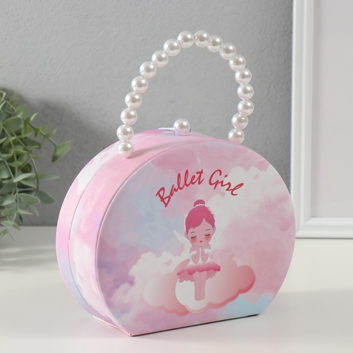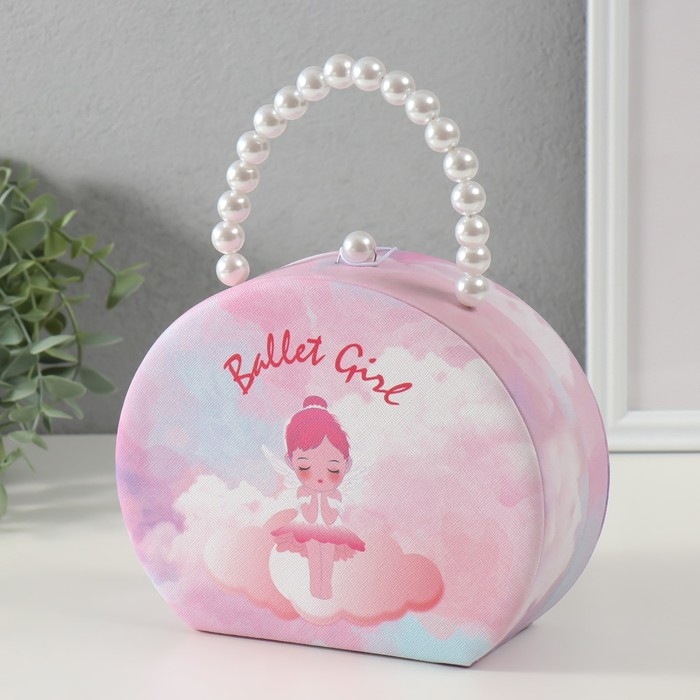 Шкатулка кожзам для украшений сумочка "Балерина-ангел" розовая 19х15,5х7,5 см