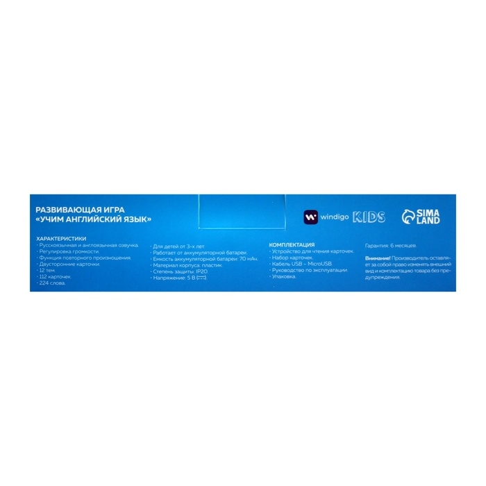 Интерактивная игра для изучения английского языка Windigo, 112 двусторонних карточек,голубая