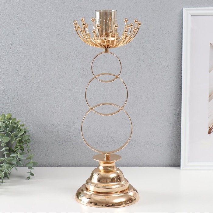 Подсвечник металл на 1 свечу d=5 см "Аурелия" золото 15х15х43 см