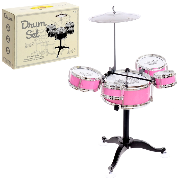 Барабанная установка «Хард-рок», 5 барабанов, 1 тарелка, цвет розовый