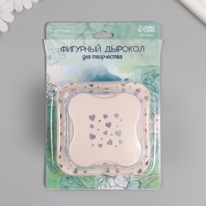 Дырокол фигурный рисунок 3,8х3,8 см "Россыпь сердец" 6.1х6,1х4,1 см