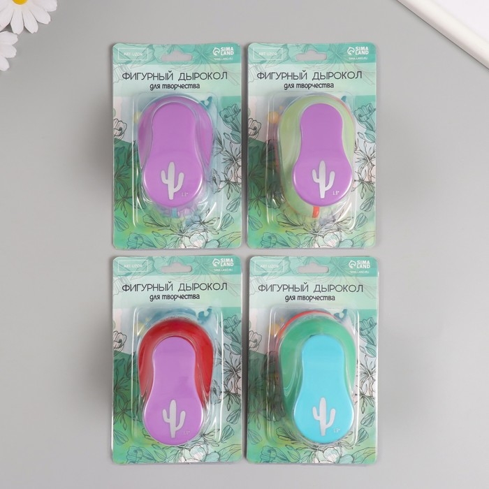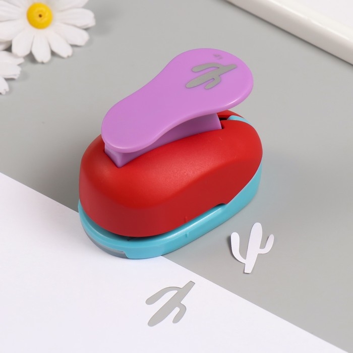 Дырокол фигурный рисунок 3,8х3,8 см "Кактус длинный" 7х5,2х9,2 см, МИКС