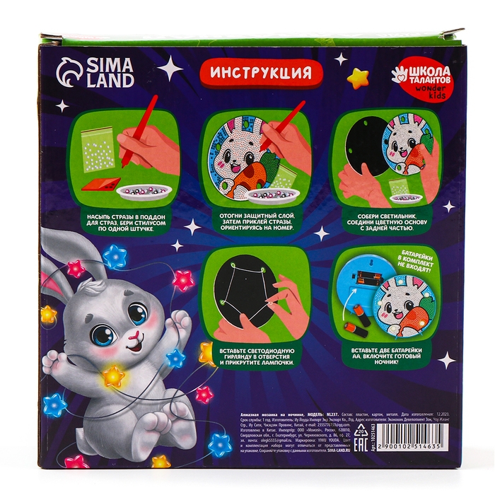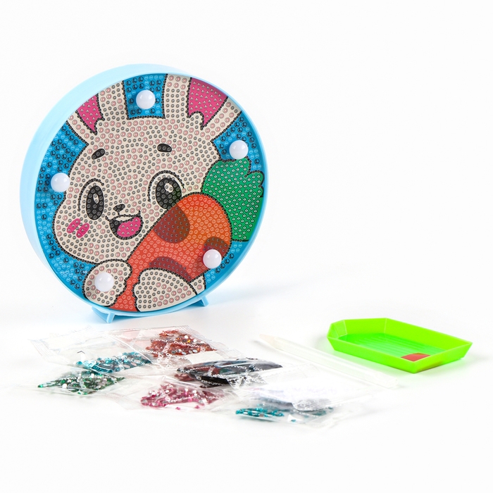 Ночник своими руками. Алмазная мозаика для детей с полным заполнением на ночнике «Зайка», 15 х 15 см