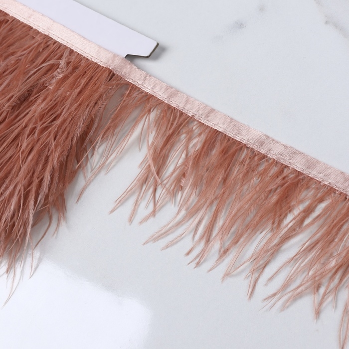 Тесьма с перьями страуса, 8-10 см, 5 ± 0,5 м, цвет лососёвый