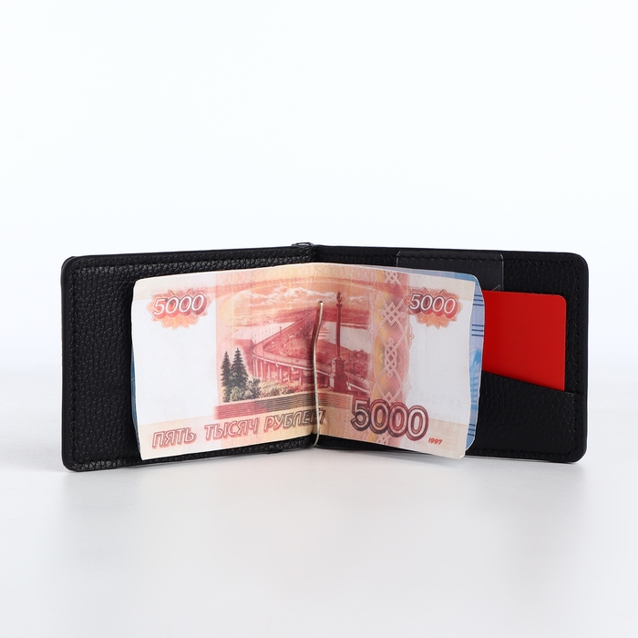 Зажим для купюр на магните, отдел для карт, цвет чёрный