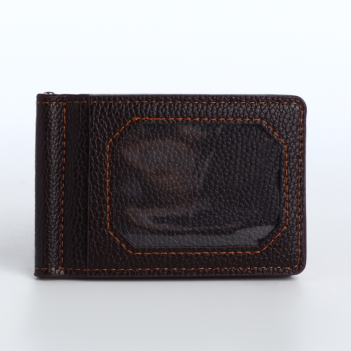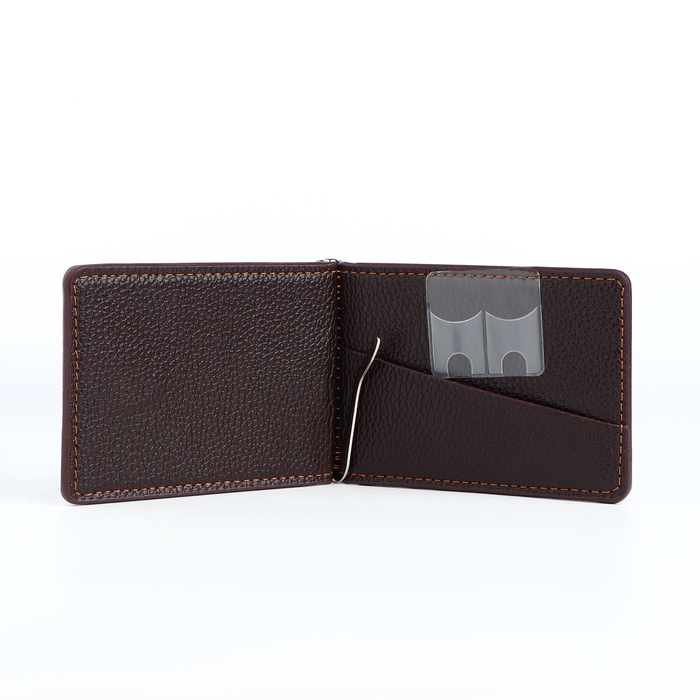 Зажим для купюр на магните, отдел для карт, цвет коричневый