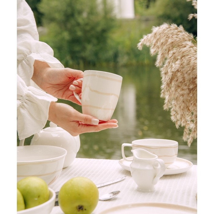 Кружка керамическая Доляна «Лилу», 190 мл, цвет бежевый