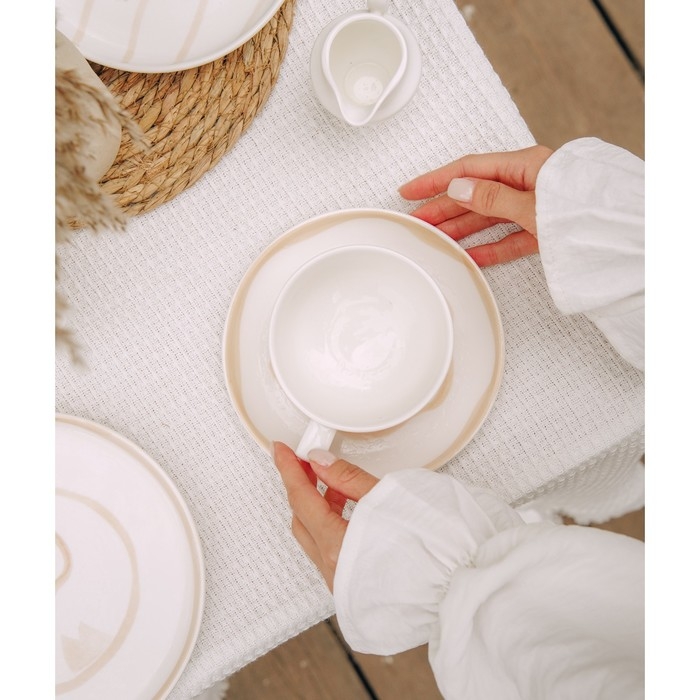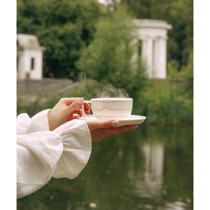 Чайная пара фарфоровая SL Home «Гато», 2 предмета: чашка 270 мл, блюдце d=16,5 см, цвет белый
