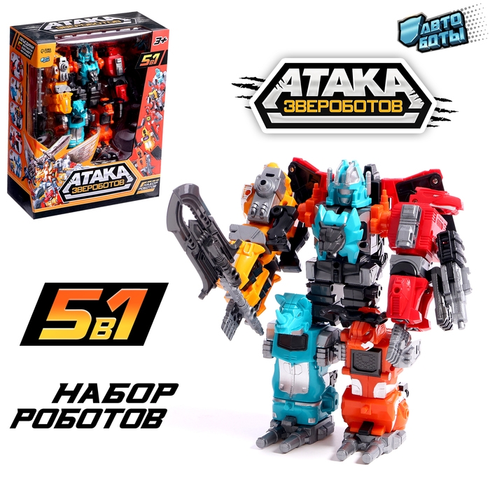 Набор роботов «Атака звероботов», 5 штук, собираются в одного