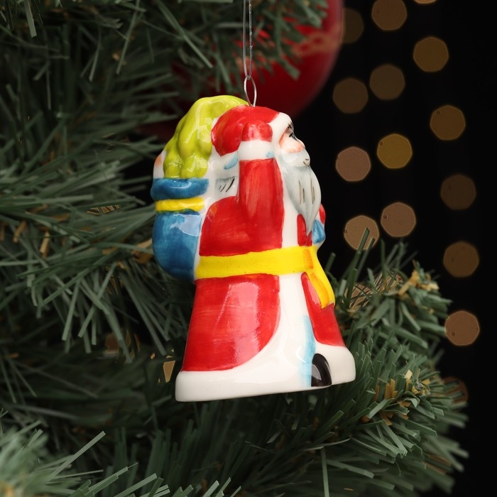 Ёлочная фарфоровая игрушка "Дед Мороз, мешок с подарками", красная шуба, 8 см